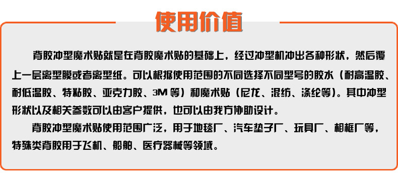 產品材質:可根據產品的需求,運用不同(滌綸、滌綸與尼龍混合、尼龍、尼龍A級、不抓毛等)材質的魔術貼。