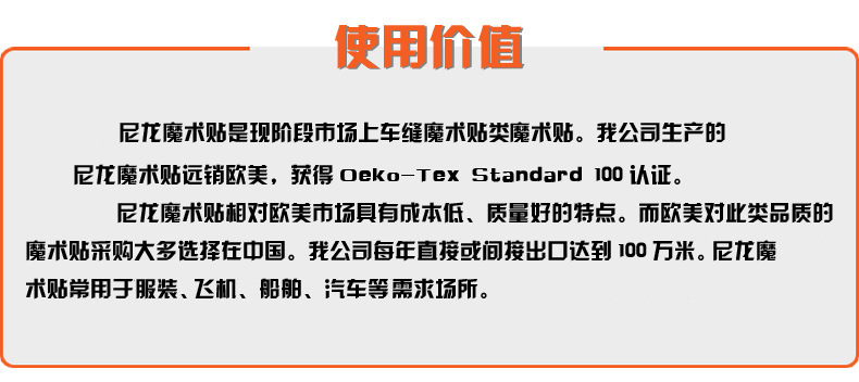 產(chǎn)品材質(zhì):可根據(jù)產(chǎn)品的需求,運(yùn)用不同(滌綸、滌綸與尼龍混合、尼龍、尼龍A級(jí)、不抓毛等)材質(zhì)的魔術(shù)貼。