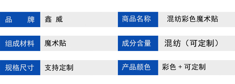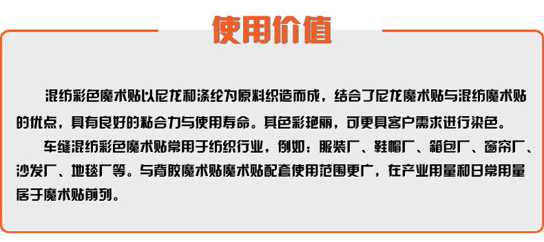 產(chǎn)品材質(zhì):可根據(jù)產(chǎn)品的需求,運用不同(滌綸、滌綸與尼龍混合、尼龍、尼龍A級、不抓毛等)材質(zhì)的魔術(shù)貼。