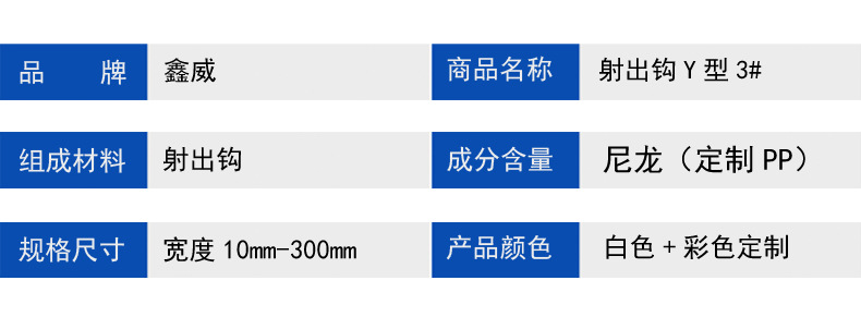 鑫威織造重磅推出白色尼龍雙面射出勾 Y 型 3#,作為行業標桿級連接輔料,憑借精湛工藝與**性能,成為多領域優選搭檔。產品采用歐盟環保標準尼龍原料,經進口設備注塑一體成型,勾面通體潔白無雜色,符合高端產品美學需求。?