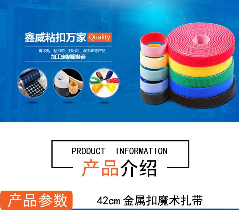 產品材質可根據產品的需求,運用不同(滌綸、滌綸與尼龍混合、尼龍、尼龍A級、不抓毛等)材質的魔術貼。