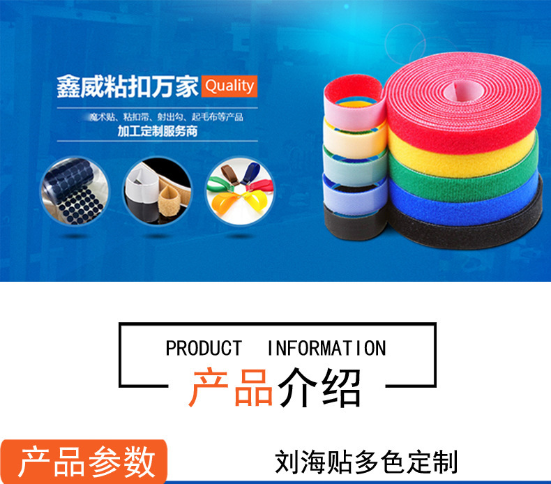 產品材質可根據產品的需求,運用不同(滌綸、滌綸與尼龍混合、尼龍、尼龍A級、不抓毛等)材質的魔術貼。